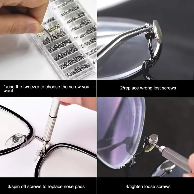 1200pcs Mini Screws Glasses Screws With Screwdriver Tweezers Repair Kit Glasses Screws Complete Screws For Glasses