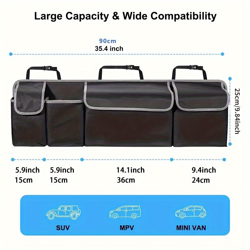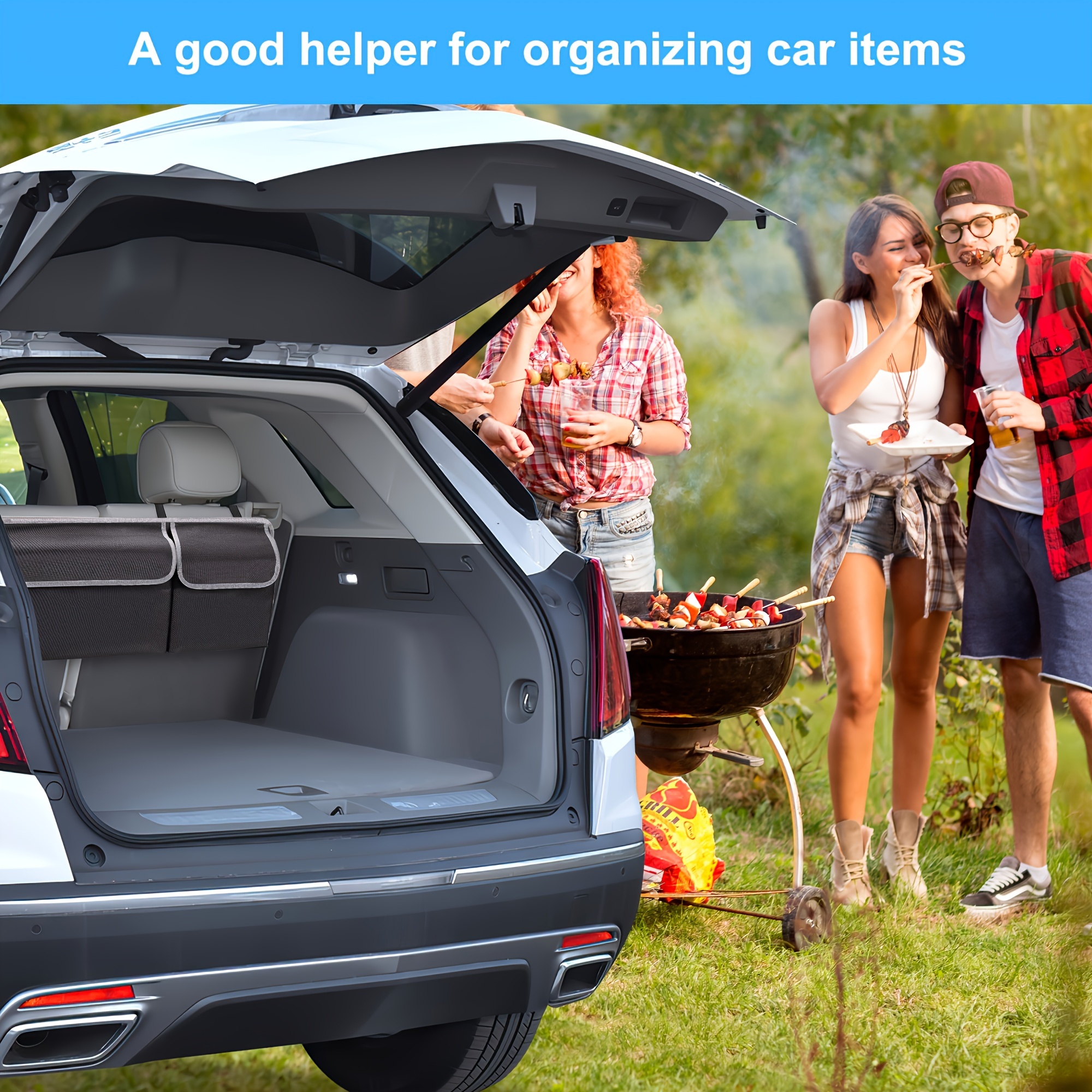 1Pc Car Seat Back Storage Bag Oxford Cloth Car Trunk Organizer With Seat Back Storage, Collapsible Waterproof Large Capacity Multi-pocket Car Tools And Accessories Storage Bag