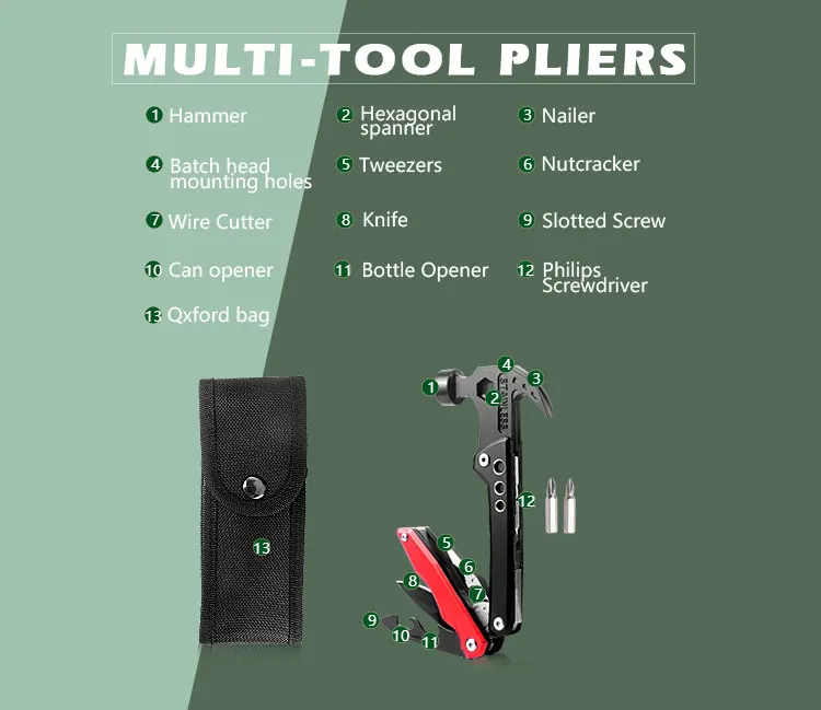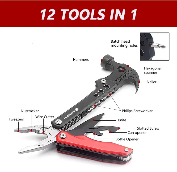 Multifunction Hammers Camping Portable Tools Stainless Steel Multi-purpose Combo Hammers with Screwdriver Pliers