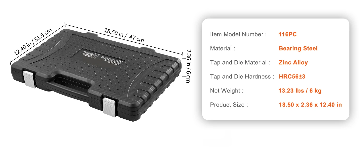 Portable Storage Case: Never worry about lost or misplaced tools again! Our tap & die sets come in a convenient and portable storage case, allowing you to effortlessly carry your tools wherever you go. It's ideal for home maintenance, including door frames, lighting installation, plumbing, gas pipelines, HVAC ventilation ducts, component installation, repairs, and automotive maintenance.